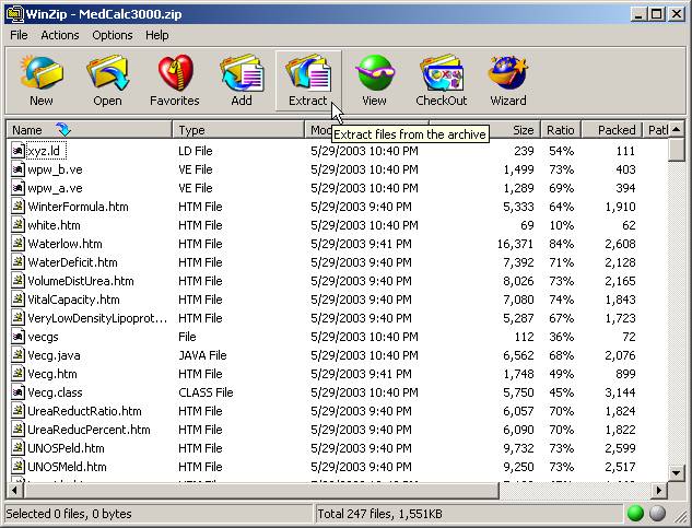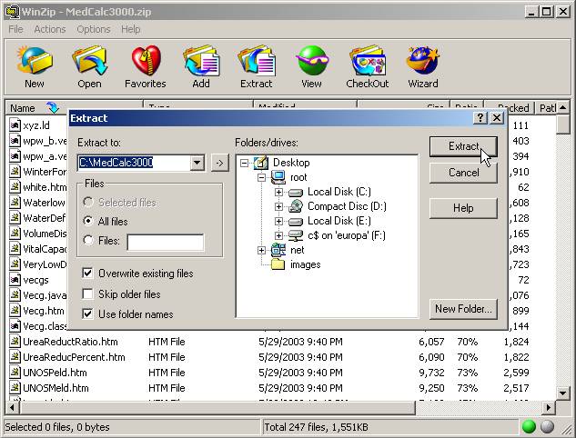 You then choose to extract ALL the files to a new directory called MedCalc3000 (you type the "MedCalc3000" directory name as a new directory on your PC.)